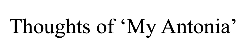 “’Notes? I didn’t make any.’ He drank his tea all at once and put down the cup. ‘I didn’t arrange or rearrange. I simply wrote down what of herself and myself and other people Ántonia’s name recalls to me. I suppose it hasn’t any form. It hasn’t any title, either.’ He went into the next room, sat down at my desk and wrote on the pinkish face of the portfolio the word, ‘Ántonia.’ He frowned at this a moment, then prefixed another word, making it ‘My Ántonia.’ That seemed to satisfy him.